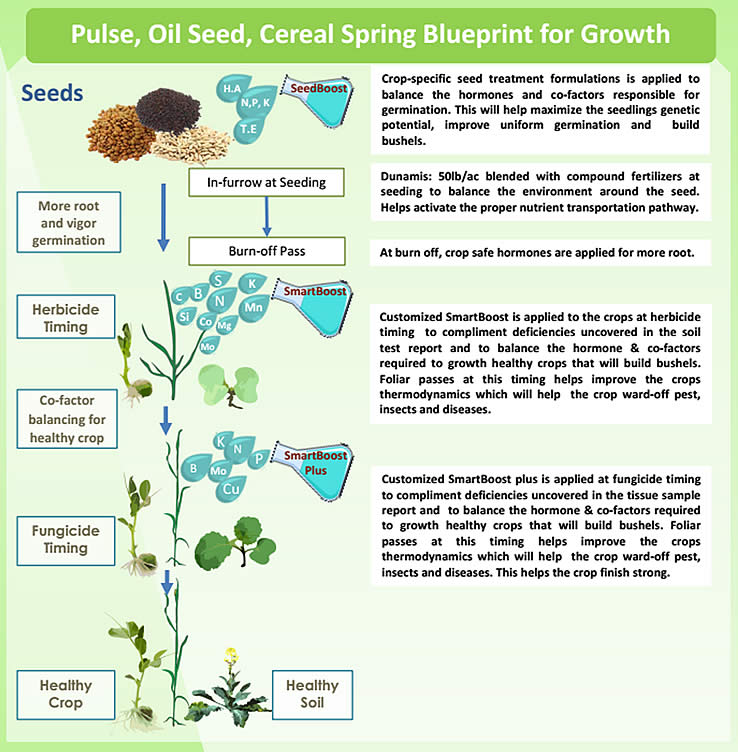 During burn-off pass, we activate the crops transport system with bio-available Boron and our growth guidance technology. This will help kick start the plant’s nutrient absorption process.